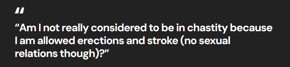 A recent FetLife discussion caught my eye because it talks about a debate that I see come up online, especially in places like Chastityforums.com: what actually counts as “real” chastity?
